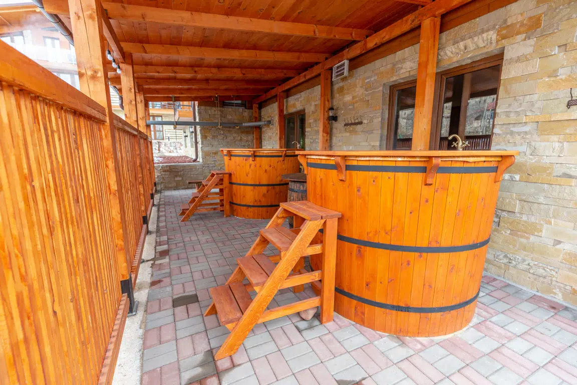 At Pine Chalets by KA Group, guests can unwind in our signature traditional wooden hot tubs, nestled in the open mountain air. Surrounded by breathtaking alpine scenery, these hot baths offer a truly unique relaxation experience. The natural wood construction retains heat beautifully, while the fresh, high-altitude air creates the perfect contrast for deep rest and rejuvenation. Whether you're soaking under snowfall or starlight, this experience connects you with the elements and leaves you feeling refreshed in both body and mind.